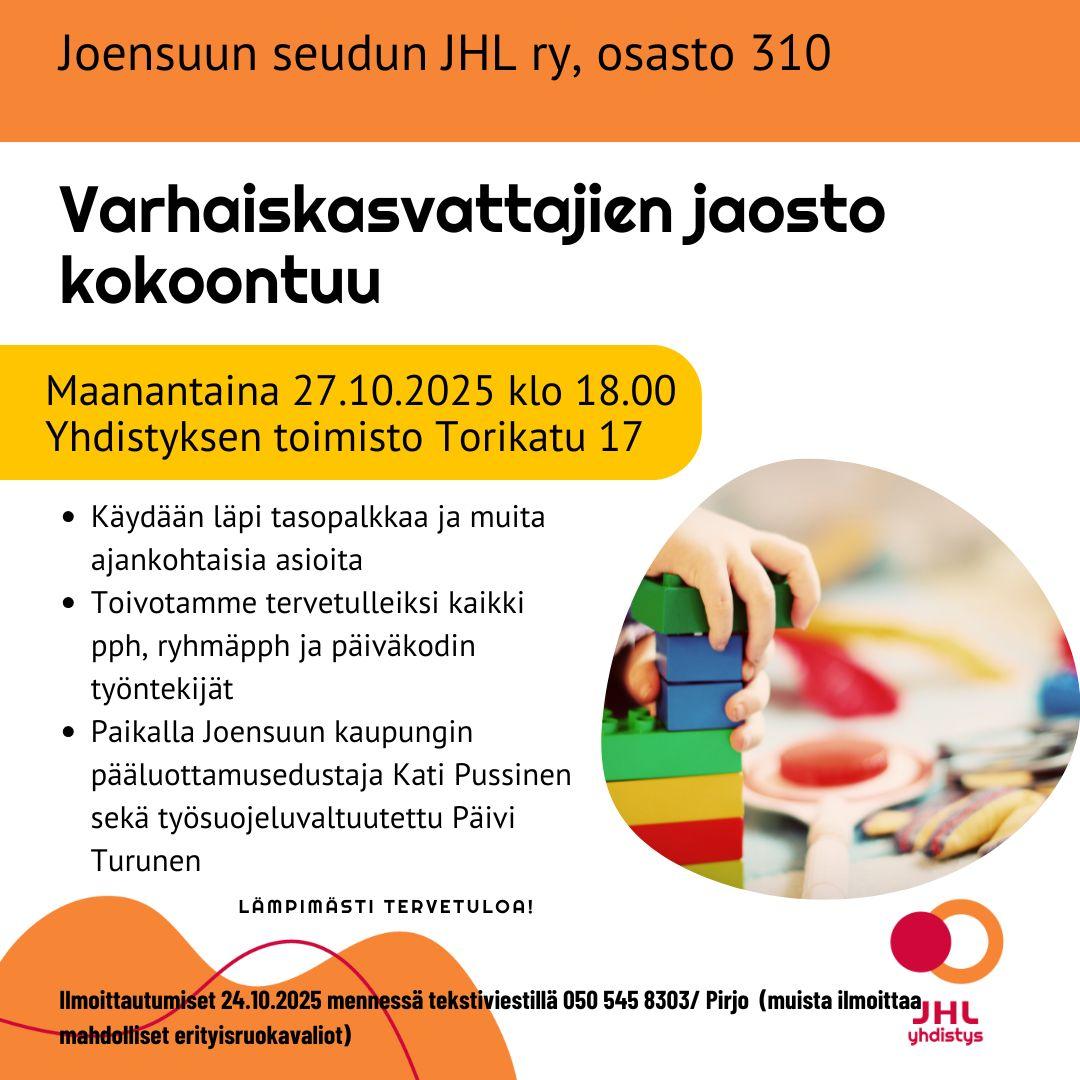 Ruokailuun ilmoittautuminen päättyy 30.10.2025 https://www.jhl310.fi/syyskokous/ tai 050 598 3279 (iltaisin)
