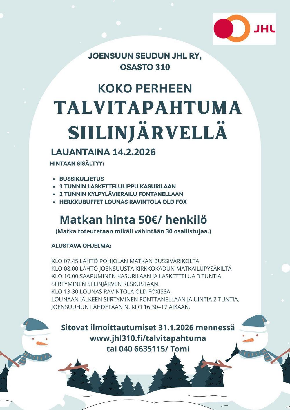 Lisätietoja vapaa-aikajaoston vetäjältä 040 663 5115 / Tomi